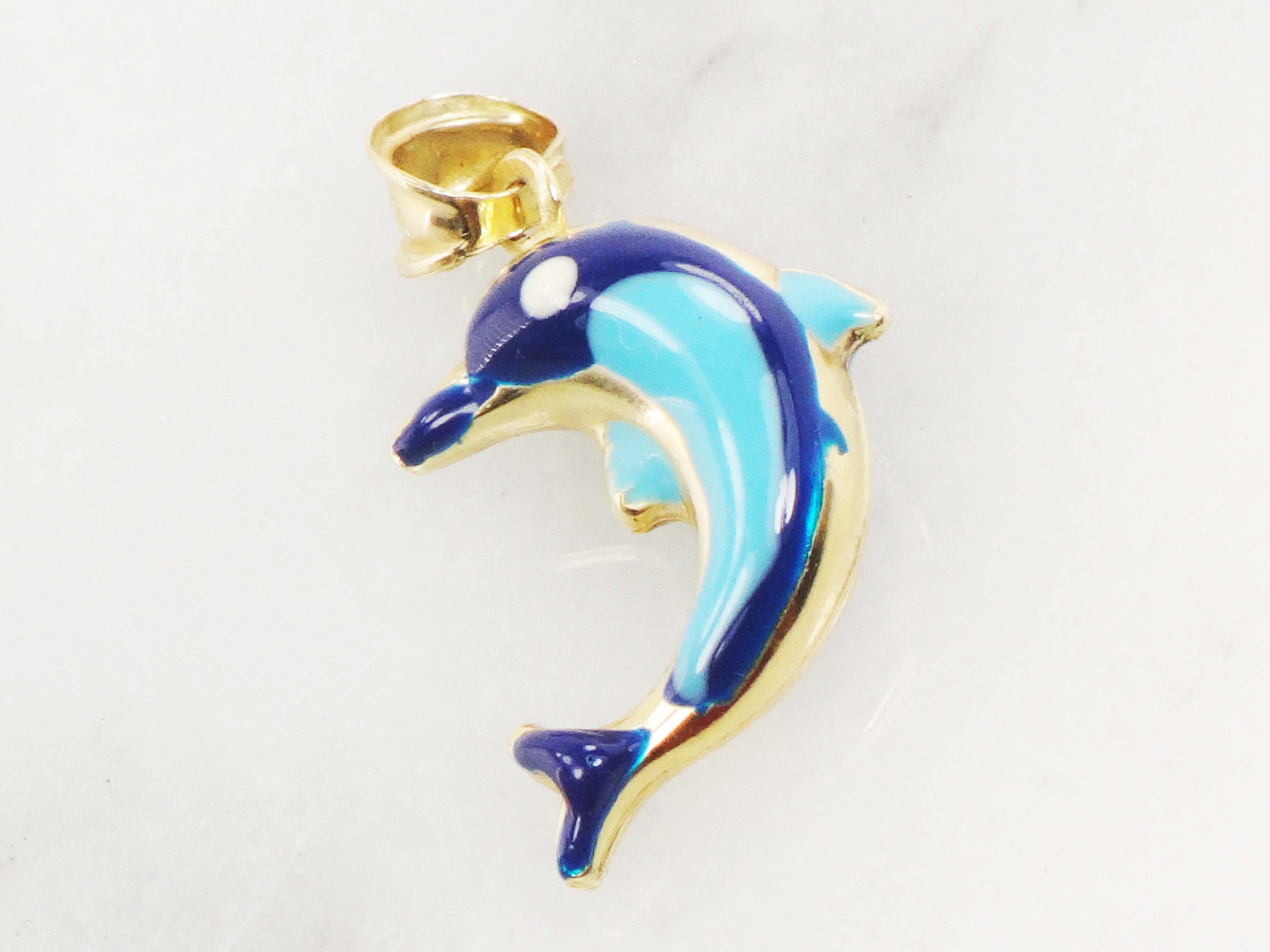 Vintage 14k Gold Blue Enamel Dolphin Pendant Marine Life Etsy Uk